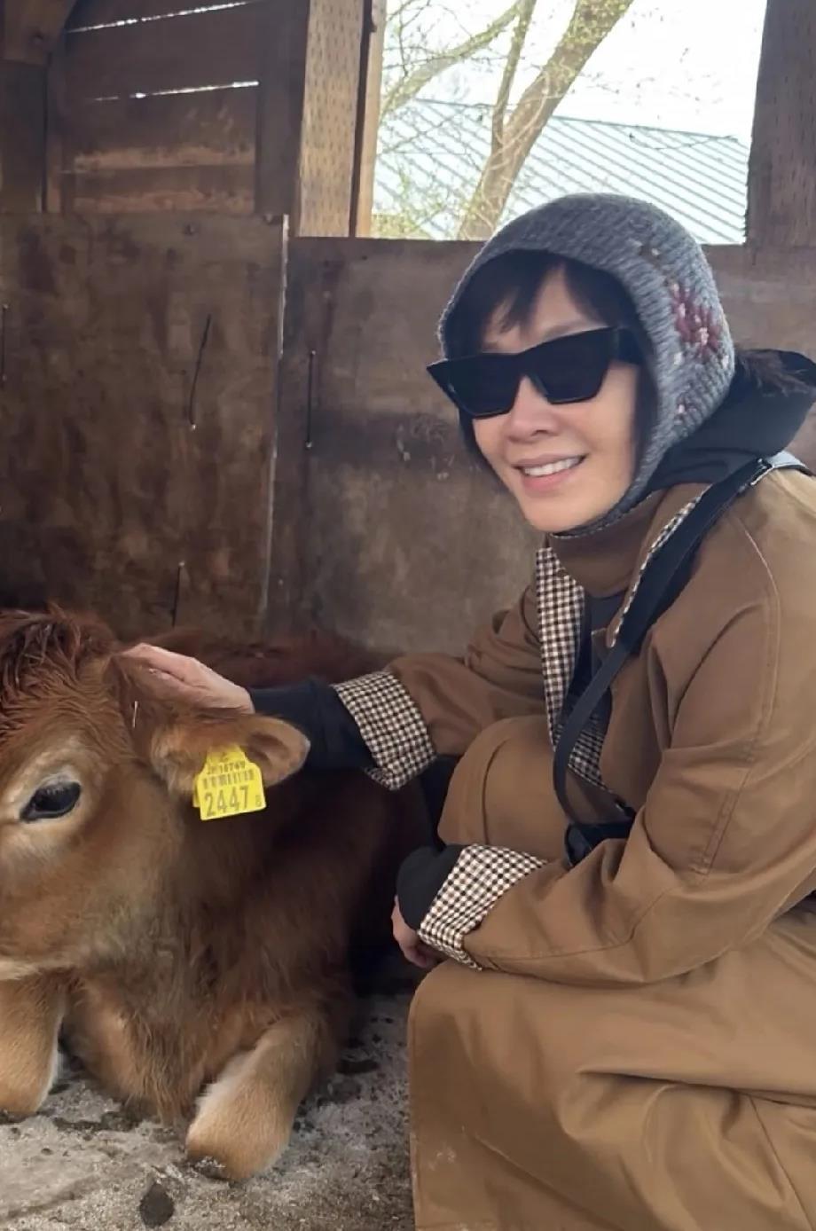 2026年3月底,她在社交平台晒出这组照片时,粉丝们都惊呆了。 画面里,60岁的刘嘉玲穿着休闲装,蹲在木栅栏围起的牛圈里,身旁就是黑乎乎的牛粪,她却毫不在意地抚摸着小牛的脑袋,眼神温柔得像在看自己的孩子。